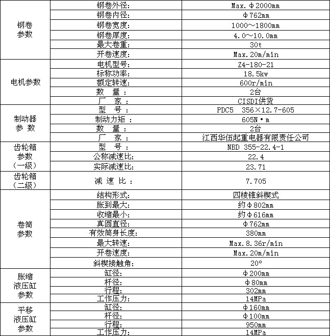 开卷机布置在连退机组入口部分的前端,分别与№1和№2钢卷小车相对应。连退机组的开卷机的作用之一是在保持带钢后张力下进行上开卷,另外一个显著作用是其中心控制(CPC)下能实现带钢的自动对中。首钢连续退火机组配置有2台开卷机,由于两台开卷机交替进行开卷,为机组后续设备的连续生产创造了先决条件。入口段的带钢张力就是由开卷机与机组的№1张力辊组共同建立的。